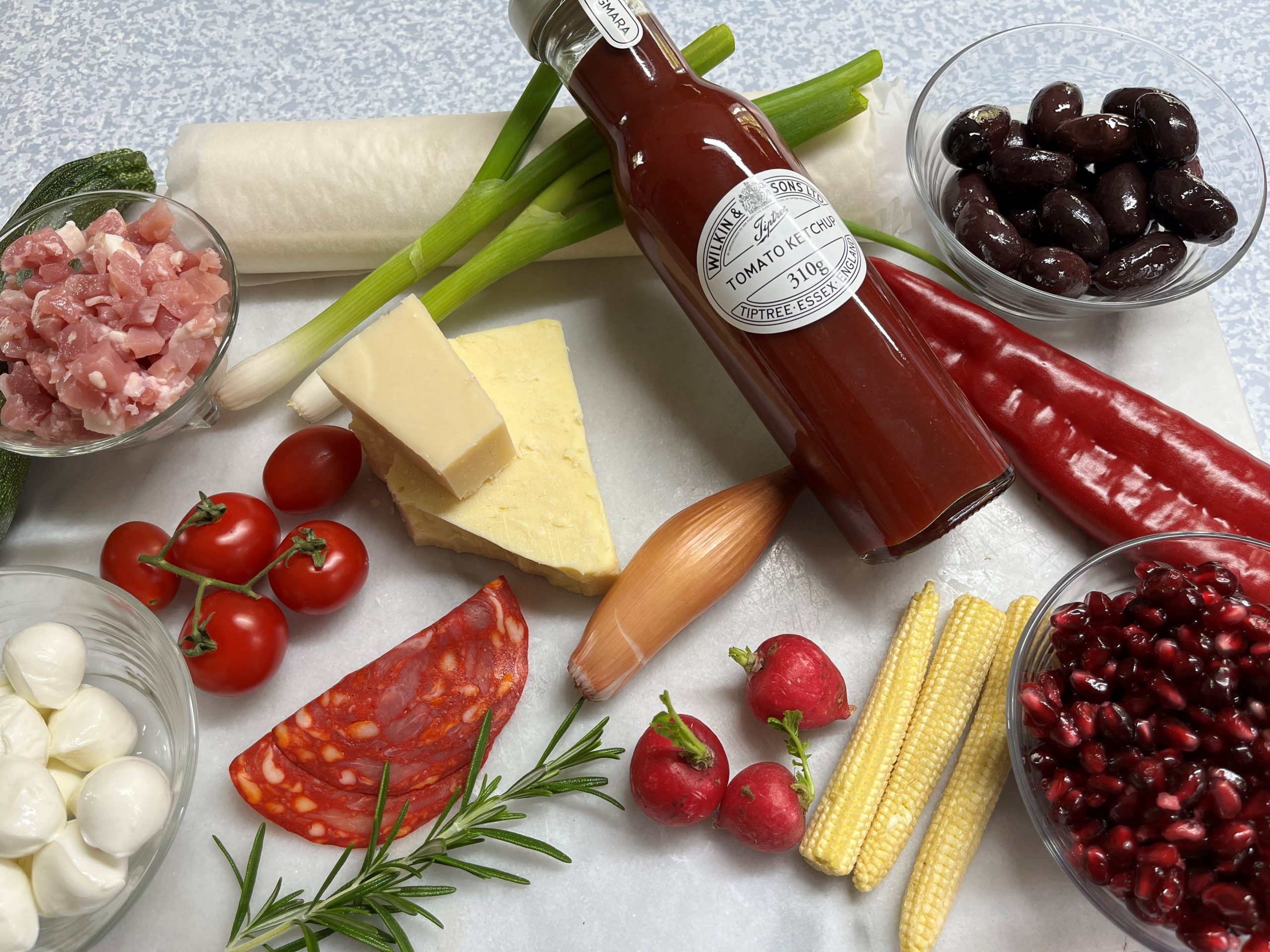 Spread the inner frame with Tiptree Tomato Ketchup and cover with grated cheeses